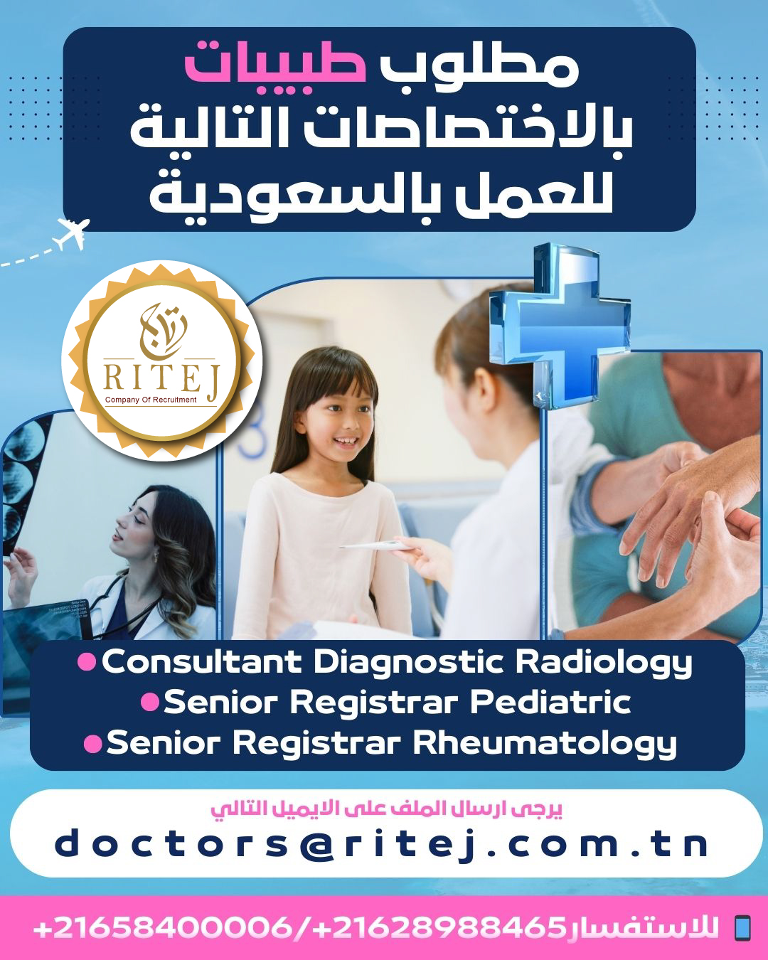 مطلوب ممرضات للعمل بمستشفى بالسعوديةتمريض عام يرجى ارسال ديبلوم و شهادات خبرة / سيرة ذاتية باللغة الانجليزيةNursing@ritej.com.tnعلى الايميل التال...